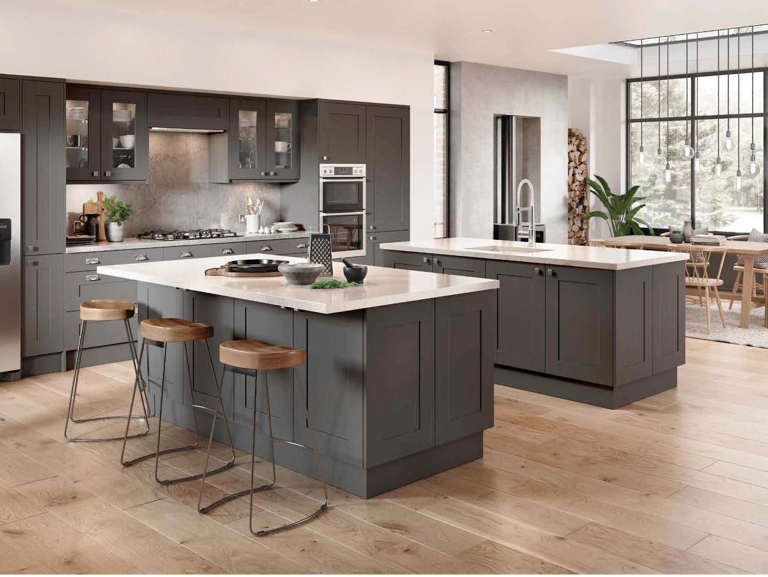 The Buckingham design, featuring a wide frame and ‘V’ grooved joints, blends a traditional shaker design with modern colours featuring a distinctive ash effect woodgrain. Resulting is a timeless kitchen suited equally well to either traditional or contemporary surroundings.
